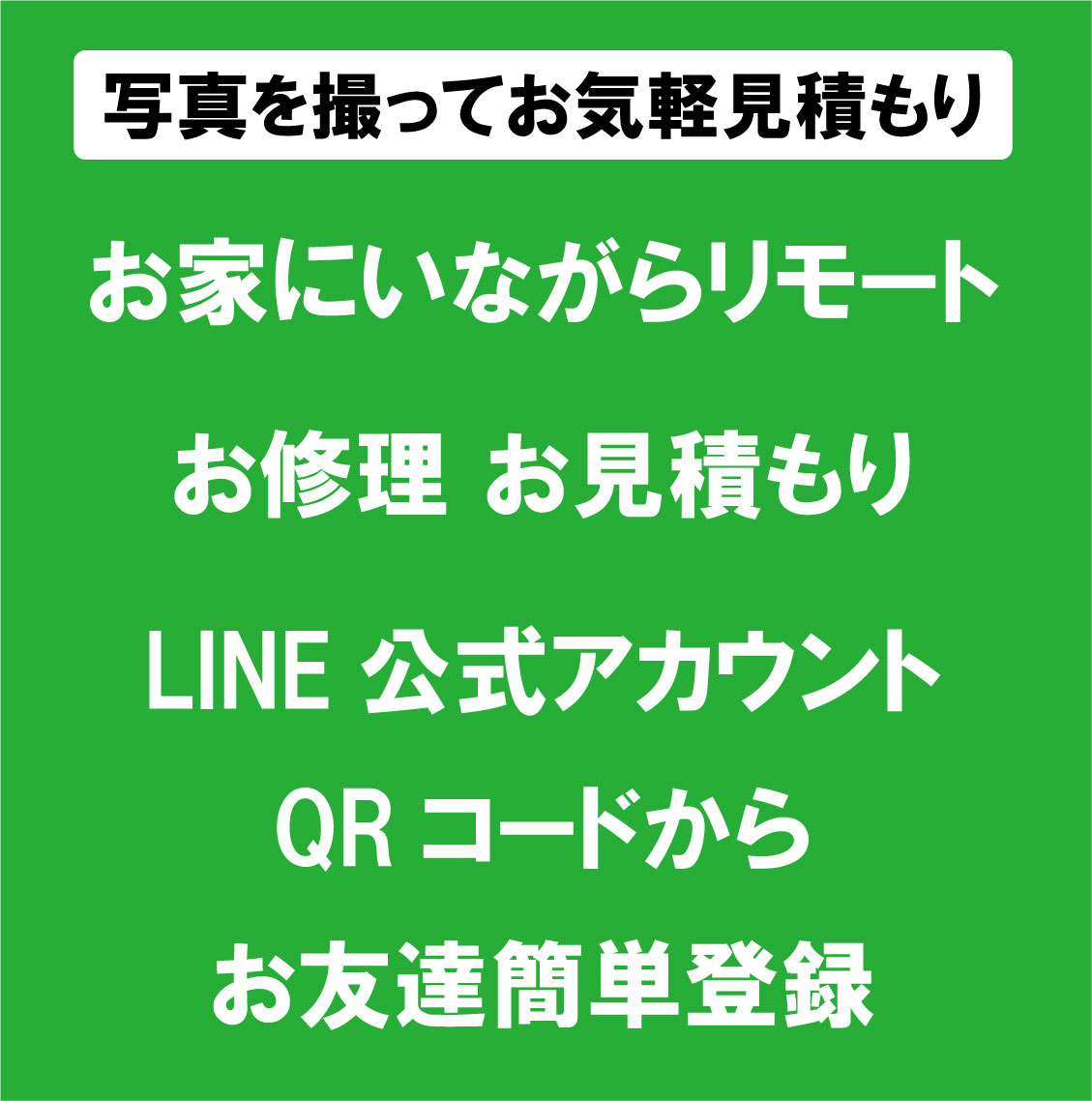 まずは友達追加、QRコードから修理したい靴やブーツの画像を添付して気軽にお問合せ下さいませ。